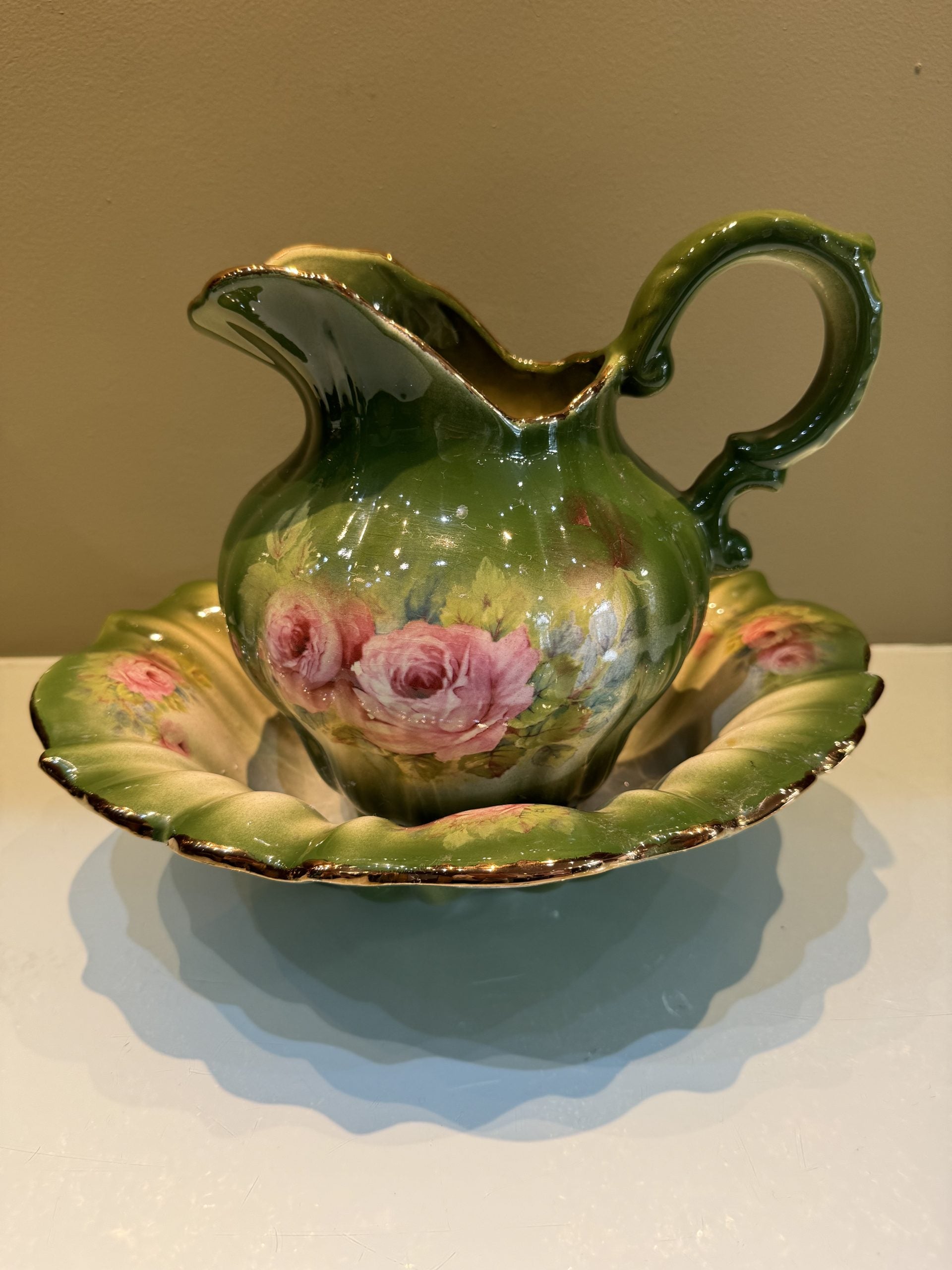 LOVELY ANTIQUE STAFFORDSHIRE WASHING BOWL & JUG, EXC. COND.