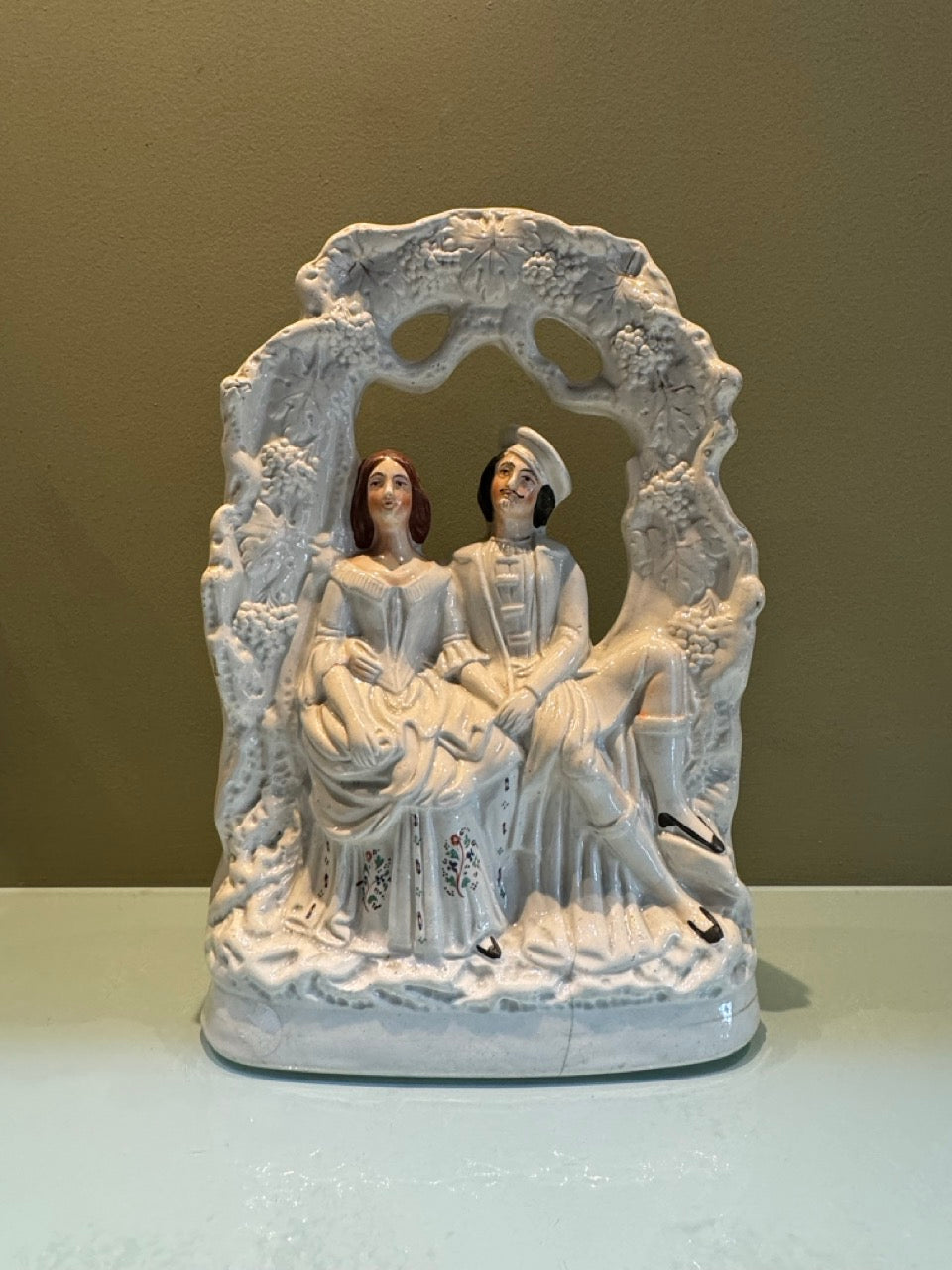 Antique 19th Century Staffordshire Courting Couple Under Grape Arbor Group Figure Figurine