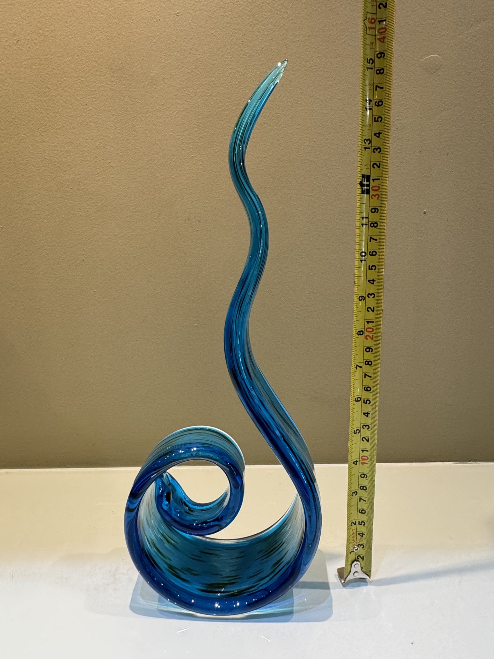 Murano Glass Contemporary Sculpture Ribbon Swirl Art Glass Blue